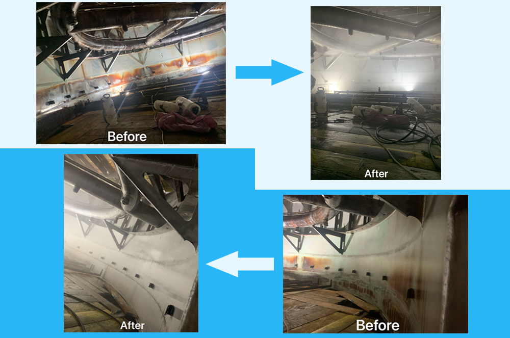 It is imperative that the structural integrity of the scrubber and associated pipework is constantly checked for signs of leakage or corrosion. In view of the acidic nature of the scrubber washwater, correct material selection for the scrubber body, pipework, components and accessories, together with good installation, but also very important, maintenance and repair workmanship are critical to avoid subsequent safety issues.